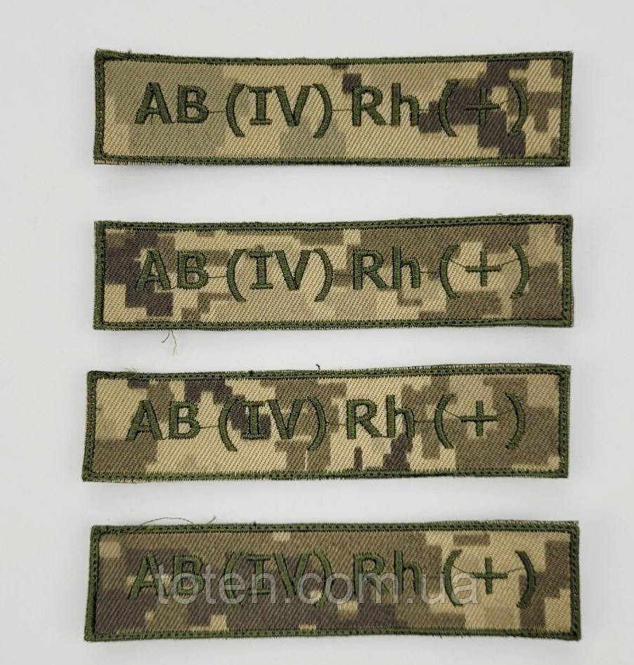| Тип призначення | Шеврон Група крові 4- четверта від'ємна, піксель. Різні групи крові. На липучці |